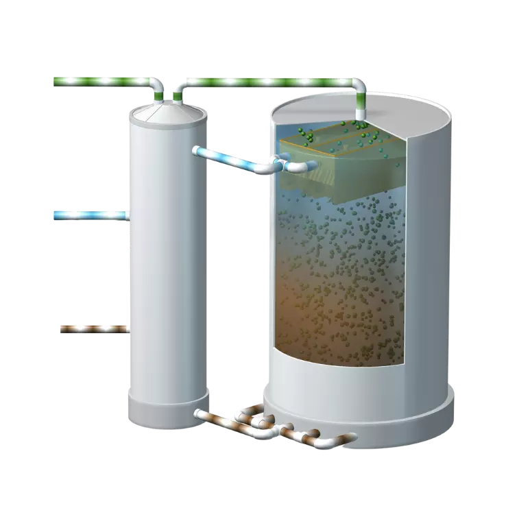 Biobed® Advanced EGSB (Expanded Granular Sludge Bed) is used to treat the effluent and produce biogas from an extremely compact, high-performance anaerobic treatment. The system is designed for 244 Nm3/h of biogas which delivers 600 kW of electricity and an additional 720 kW of heat. Following the AD treatment, a crossflow type aerobic Membrane Bio Reactor is used as a further biological treatment stage and from here the permeate is returned to the process. The organic sludge and residues that remain from the water treatment may be used as a fertilizer for crops.